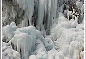 직탕폭포의 상단에서 얼음이 부풀게 얼어 아래에 물이 흐르는 소리가 들리고,